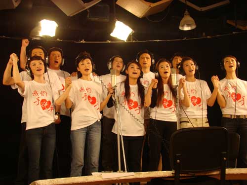 在將近10個(gè)小時(shí)的錄制過程中,所有參與的工作人員在將近五十度高溫的錄音棚內(nèi)堅(jiān)持工作,以最飽滿的熱情錄制歌曲。朱軍、董卿還都是在結(jié)束了白天的工作后在凌晨直接趕到錄音棚的,整個(gè)錄制過程到凌晨1點(diǎn)半才結(jié)束。大家都真心地希望通過這首歌曲能給災(zāi)區(qū)人民帶去些許撫慰,能夠鼓勵(lì)大家攜起手來堅(jiān)強(qiáng)面對(duì),共渡難關(guān)。