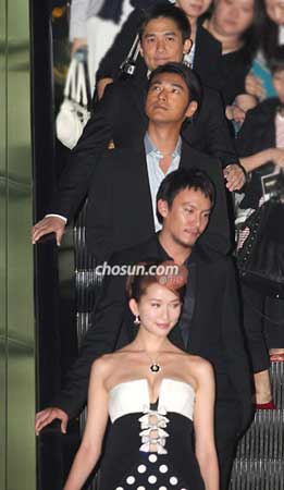 中新網6月27日電 26日下午, 由吳宇森執導的《赤壁》的韓國試映會在首爾三成洞韓國會展中心的MEGA影院舉行。當天,《赤壁》的主要演員梁朝偉、金城武、林志玲出席了試映會,為活動增添光彩。
