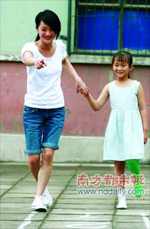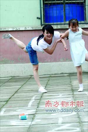 組圖:周迅拍攝公益片 與小演員玩"跳房子"