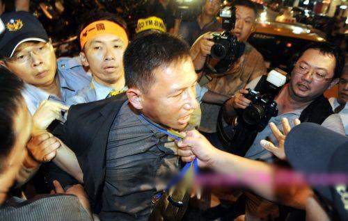吳伯雄5日晚上在晶華酒店宴請陳云林,嗆聲民眾包圍飯店數度沖撞,走避不及的大陸媒體隨行人員遭綠營民眾圍堵拉扯。