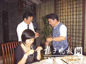 為了對在南京的聯合國副秘書長進行高端訪問,央視“高端主持人” 水均益前晚突然空降南京,天黑了才下飛機,在幾位朋友的盛邀下,直奔南京頗負盛名的吃龍蝦酒店星湖飯店,現學現考,獲得“三段證”,有趣的是一同隨來的愛妻、央視五套專跑臺球大師杯的著名記者楊迪,吃蝦技藝超過老公,得了“六段證”。