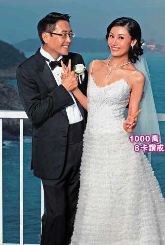 嘉欣與許晉亨抵達許家大宅后,先在花園拍攝結(jié)婚照,由著名攝影師夏永康操刀。嘉欣先穿粉紅色Valentino長裙,與許晉亨十指緊扣倚在花園欄桿邊,以大浪灣作背景拍攝第一輯相。其后嘉欣再換上一襲紅色晚裝,拖許晉亨步向泳池旁拍攝第二輯結(jié)婚相,由于她所穿的晚裝裙襬頗長,要由工作人員幫忙擺放。現(xiàn)場所見,一對新人表現(xiàn)得十分纏綿,嘉欣先躺在許晉亨的大腿上,二人又抱又親。嘉欣更雙手?jǐn)[出V字勝利手勢,而許晉亨則開心得像小孩子一樣。