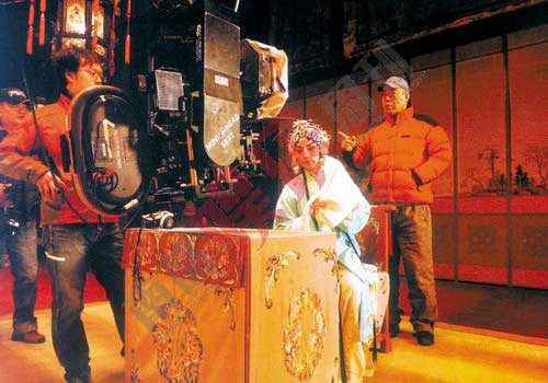 陳凱歌在拍攝現(xiàn)場說戲