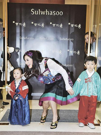 懷有3個多月身孕的子淇照穿高跟鞋,又屈身親近小孩,似乎忘記孕婦的傳統(tǒng)禁忌。香港《明報》圖