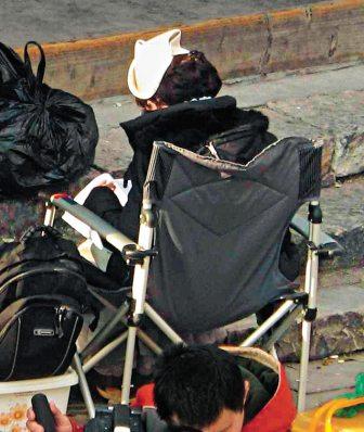 鏡頭后的伊能靜獨坐一角看劇本,刻意背對人群。