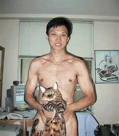 05年倪震將抱著兩人愛貓“周慧豹”遮住重要部位的相片放上網(wǎng)分享。