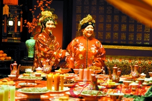 記者:今天拍的是“榮國(guó)府元宵開夜宴”的重頭戲,60多位演員都在,剛才看這場(chǎng)戲NG了幾十次?