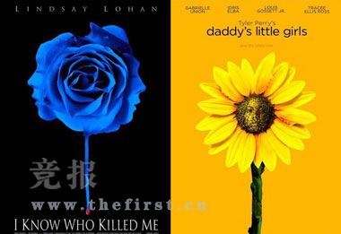 簡單的畫面,開得正旺的鮮花上若隱若現(xiàn)著一張臉,干凈利落。不過不要以為換了顏色,我們就看不出了。當(dāng)然,黑底藍(lán)花渲染了《我知道誰殺了我》的恐怖氣氛,向日葵讓《爸爸的女兒》溫暖的主題更深入人心。