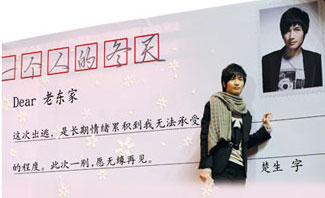 陳楚生再次在自己的博客上發表文章,希望媒體不要打擾自己的家人,而發生在自己身上的解約事件,他愿意坦然地去面對應該承擔的責任。而他所說“責任”的另一方——東家天娛公司卻罕見地在陳楚生公開表示沖喜的那天(1月15日)起保持著不做任何回應的低調態度。(詳情請見本報1月21日報道)。陳楚生是從天娛主辦的“快男”舞臺上迅速鑄就的傳奇,但同時也遭遇到整個選秀體制客觀存在的缺陷帶來的窘迫。日前,天娛總經理龍丹妮接受本報記者獨家專訪,坦率地回應了外界對天娛的種種猜測與斷定,而作為新官的她將燒起三把火:開拍新版《流星花園》、春夏期間舉辦超女,而最終要做的就是“引火燒身”,從體制上改革天娛。