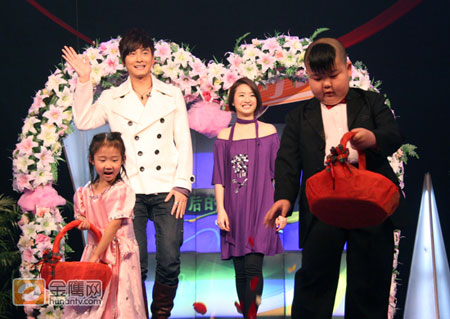 節(jié)目開始錄制,演播廳響起浪漫的結(jié)婚進(jìn)行曲,在可愛的小伴郎、伴娘的帶領(lǐng)下,鄭元暢、林依晨踩著伴郎、伴娘揮灑的玫瑰花瓣,浪漫登場。也成為《背后的故事》節(jié)目中,第一個踩著玫瑰花瓣上場的嘉賓。