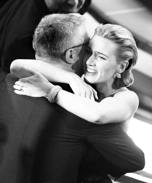 獲獎后凱特·溫斯萊特和丈夫熱烈擁抱