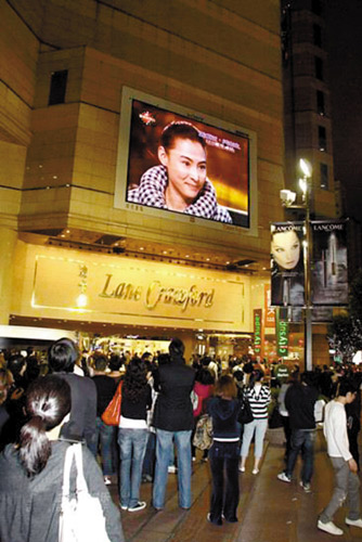 香港市民駐足觀看戶外屏幕上的電視采訪畫面
