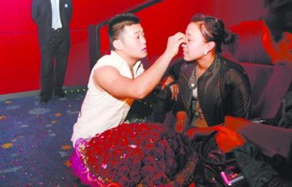 等情緒穩定下來,記者獨家專訪了毛毛。毛毛仔細回想了一下這幾天男友的表現,說她最近發現王金龍行為有點怪,接電話的時候總是偷偷摸摸的,她一問是誰,王金龍就隨便找個理由給搪塞過去。“今天他跟我說要去補拍婚紗照,我就覺得有點兒不對勁,婚紗照早就弄好了啊,為什么還拍呢?也不知道他要干什么。 ”盡管這樣,一向對男友言聽計從的毛毛還是相信了男友,跟著他出了家門。毛毛說,就在大屏幕上出現王金龍的時候,她一下子就蒙了,怎么都不敢相信眼前的一切!拔乙郧爸辉陔娪半娨晞±锟吹竭^求婚的場景,我沒想到自己也能經歷一次這么浪漫的過程。剛才我腦子里一直在想我們倆人在一起的場景,一幕一幕的,真的很感動。 ”