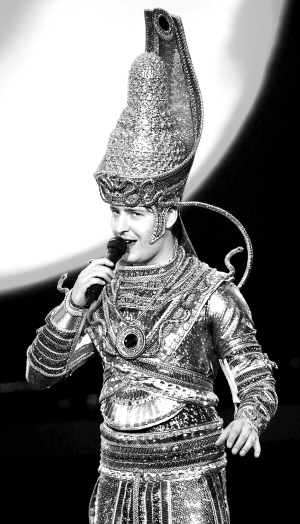 維塔斯火起來是在2000年,克里姆林宮一曲《歌劇2》,真是驚為天人。那時的他愛穿標志性的窄身黑西裝,戴著一條紅圍巾,跨越5個八度的不可思議的海豚音,給人的感覺神秘而空靈。昨天的維塔斯卻以一身紅色的機器人服飾出場,剛開始的幾個高音完全聽不出原有的清亮,眉眼也因為發胖而顯得模糊,依稀能看見個熟悉的輪廓,但魅惑的精魄已經散去。從無字《詠嘆調》到《我的太陽》再到《今夜無人入眠》,一首首經典曲目在他口中變得千篇一律,而中文曲目《大海啊大海》《青藏高原》給人刻意討好的感覺。每次唱到高潮部分,維塔斯總會因為手舞足蹈而跳過演唱,一段段熟悉的旋律就此在他游離的眼神間劃過,好像磁帶突然跳帶,讓人很不過癮。
