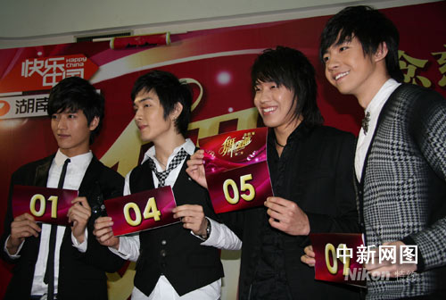 張峻寧、李承炫、東方、俞灝明(從左至右)現場抽取參賽編號。 鄧霞 攝