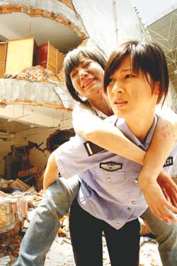 《震撼世界的七日》災區拍攝中 童蕾演警花(圖)