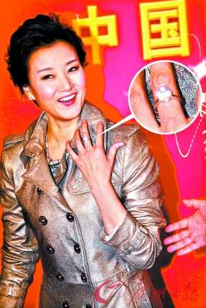 宋祖英身穿雙排扣風衣,拿銀色小坤包亮相,意氣風發,而左手中指上的鴿子蛋鉆戒甚是晃眼,連同閃耀的鉆飾耳釘,宋祖英無疑成為全場最閃耀的明星。