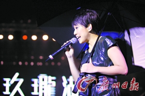 在主持人的隆重介紹之下,林憶蓮一出場即引起了在場嘉賓的熱烈掌聲。依舊一頭時尚短發的林憶蓮,只穿一襲黑色連衣短裙登臺,簡潔而不失時尚感。在唱到第二首《聽說愛情回來過》時,林憶蓮索性走下臺去和雨中捧場的嘉賓一一握手,將晚會的氣氛推向一個小高潮。而當《至少還有你》那熟悉的旋律響起,現場氣氛更是達到了頂點,為盛典增添了完美的樂章。
