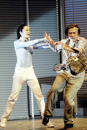 對策:在一年一度的公司評估會上,拉拉認清事實,選擇與玫瑰正面PK。她運用SWOT分析法[SWOT是一種分析方法,用來確定企業或自身的競爭優勢(strength)、競爭劣勢(weakness)、機會(opportunity)和威脅(threat),從而采取的具體戰略與策略。]得到上司的信任,最后把玫瑰趕出公司。話劇通過歌舞的形式體現了二人的明爭暗斗。