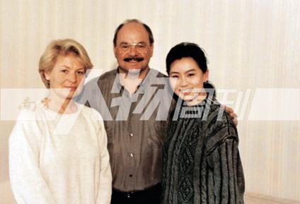 1992年在央視實習,采訪施拉普納,與施拉普納夫婦合影。