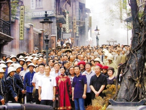 關(guān)機(jī)儀式在劇組耗資5000萬元、以1:1比例還原的“1905年香港中環(huán)”舉行。正是在這個(gè)堪稱中國(guó)電影史上最大規(guī)模的單片布景里,甄子丹、黎明、胡軍、謝霆鋒、范冰冰、李宇春等飾演的愛國(guó)義士各顯神通,拯救了被清政府追殺的國(guó)父孫中山。根據(jù)劇組透露的資料,《十月圍城》拍攝歷時(shí)113天,經(jīng)歷了9場(chǎng)大雨、36次吵架,拖延11天,終于迎來殺青之日。