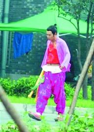 前日下午2時左右,小沈陽在幾位工作人員的陪同下走出攝影棚。一身“粉裝”的他,里面竟然穿了一件露臍的紅色肚兜,看起來更像是二人轉演員!看來,在片中負責搞笑的小沈陽,穿著打扮也跟老本行相似,演起來應該會更加得心應手。與小沈陽的搞笑打扮相比,孫紅雷的造型多了一分英武之氣。在攝影棚外打電話的孫紅雷,身著藍衣藍褲,外面套了一件黑色護甲,看起來像是一個忍者。韓貝塔