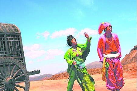 《三槍》主演花花綠綠的裝扮相當惹眼,原來是張藝謀有意為之,“我想的徹底是鮮艷的,要讓人看了就炸起來那種(感覺),完全不要按常規(guī)去想,咱先弄強烈,再往回收好辦。”俗也是刻意追求,“這個綠是水綠,果綠,就是俗一點……顯得廉價了一點,就百家衣,跟萬民傘似的,很刻意,要這種自由拼貼。”