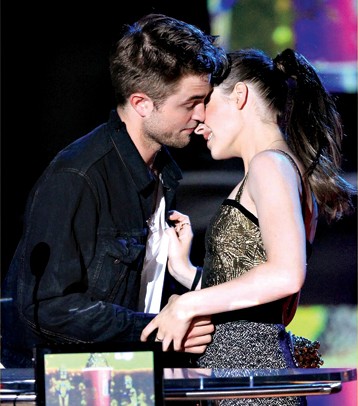 《新月》受追捧主要因為男女一號羅伯特·帕丁森與克里斯蒂·斯圖爾特的化學作用。而在戲外,兩人也是好萊塢的一對“明星情侶”。昨日,摘得“最佳接吻”獎的兩人當場為在座觀眾獻上一吻,引來尖叫無數。