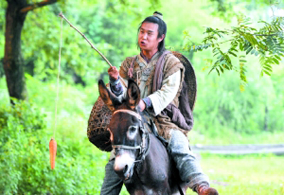 昨日記者探班的戲份是影片的開場:小沈陽飾演的凡人小鞋匠騎著毛驢準備闖蕩江湖。只見小沈陽騎著毛驢一臉悠然自得狀,一邊用樹枝吊起一根胡蘿卜在毛驢的眼前搖晃。這場簡單的戲竟然拍了6條才過,全因小沈陽總是讓毛驢吃不到胡蘿卜而將其“惹惱”,生氣的毛驢每次都在同一個地點停下,任憑小沈陽怎樣吆喝,就是紋絲不動,引得小沈陽頻頻笑場。而聰明的毛驢卻在眾人不注意之時,咬住胡蘿卜便不松口。(特派記者孫琳琳)