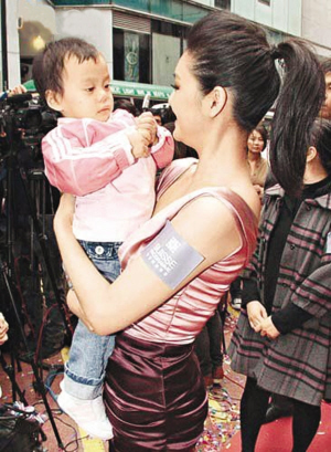 臺灣女星大S日前身穿名牌低胸連身裙,冒寒風出席代言活動。現場,大S看到一名手抱小孩的女子當即母性大發,主動出手抱走小孩又玩又笑,完全不舍得放手,“我真的很喜歡小朋友,每次看到也抱著不放,我真的有病!所以妹妹的小孩交給我照顧最好,我是最好的保姆。”