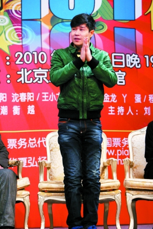 2010年1月9日,“陽仔的第101夜”將在工體館上演。這是繼今年3月以來,小沈陽長達數月的“二人轉馬拉松”的百場紀念演出專場。昨日的媒體見面會上,關于春晚、收入以及明年計劃等焦點問題,小沈陽的回答可謂“滴水不漏”:“春晚還沒有消息”,“(收入)我很滿足”,“(明年)一切都聽公司和師父的安排,我自己說得不算。”