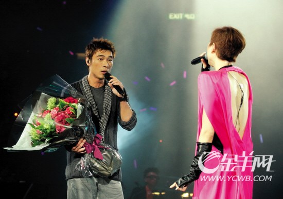 當(dāng)晚,鄭秀文先是在臺(tái)上表示:“今晚請(qǐng)了一個(gè)很特別的人來(lái)做我嘉賓,讓我先喝口水,因?yàn)檫@首歌已經(jīng)N年沒(méi)唱過(guò)了!”之后便響起她與許志安的經(jīng)典合唱歌《其實(shí)你心里有沒(méi)有我》前奏,全場(chǎng)觀眾立即瘋狂尖叫。此時(shí)許志安拿著一束桃紅色玫瑰花上臺(tái),場(chǎng)面浪漫感人。當(dāng)唱到最后一句“其實(shí)你心里有沒(méi)有我”時(shí),鄭秀文有點(diǎn)害羞地避開(kāi)許志安的眼神。