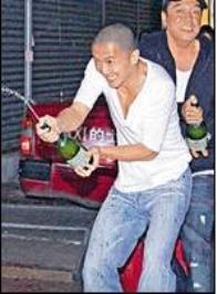 之后,工作人員便拿出香檳,霆鋒及一幫演員早有默契的互望,接著便用香檳互噴,隨后,謝霆鋒更興奮得走出馬路,嚇得在場的工作人員大叫他“小心!”。互噴香檳后,謝霆鋒等人才乖乖走回鋪內,與工作人員互相碰杯、齊飲香檳,場面十分熱鬧。