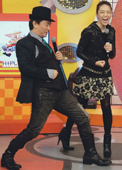 “聯(lián)合報”消息,侯佩岑婚事大家追,昨天她婉拒采訪,吳宗憲則先到醫(yī)院看乳房腫瘤開刀的太太,遲了1小時進棚,面對追問,憲哥說:“她這次太神秘,我也不清楚,”吳宗憲一見到侯佩岑就連聲恭喜,兩人一進棚就響起結(jié)婚進行曲,侯佩岑大聲宣布:“歡迎新郎吳宗憲”,成了搞笑二人組。