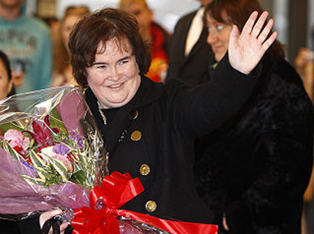 中新網(wǎng)12月30日電 英國當(dāng)紅明星蘇珊大媽(Susan Boyle)昨天(29日)抵達(dá)日本,她將參加日本放送協(xié)會(NHK)在除夕夜舉辦的紅白歌唱大賽。蘇珊大媽上午抵達(dá)東京成田機(jī)場,現(xiàn)身出境口時,滿臉笑容更狂向粉絲送飛吻,她已愈來愈有明星架勢。