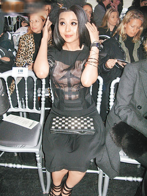 范冰冰于巴黎時間前日(3月6日)在當地欣賞時裝秀,穿上黑色透視裝的她,內襯肉色三角錐體Bra(文胸),有型又新潮。