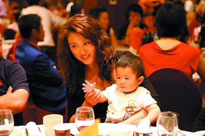 由于晚會(huì)當(dāng)天安排了晚宴,近百位明星藝人將晚會(huì)現(xiàn)場塞得滿滿當(dāng)當(dāng),加上媒體的攝像機(jī),要在現(xiàn)場走動(dòng)頗有幾分難度。但坐在主桌的王志文卻頻頻向隔壁桌示意,記者追隨過去,意外發(fā)現(xiàn)了王志文的太太陳堅(jiān)紅手里抱著一個(gè)一歲不到的孩子。經(jīng)證實(shí),這個(gè)9個(gè)月大的孩子正是兩人的愛情結(jié)晶。與之前相比,孩子長大了不少,一雙小眼睛更是像極了父親王志文。只見小朋友面對記者的鏡頭并不見半點(diǎn)緊張,大有父親般的明星派頭,不僅任由拍攝,還時(shí)不時(shí)拿起手中的塑料玩具,和媽媽逗趣玩耍。而一頭中長燙發(fā)的陳堅(jiān)紅依舊年輕漂亮,皮膚白皙,看到記者的鏡頭,陳堅(jiān)紅也沒有表示抗拒,只是專心地和孩子玩耍。