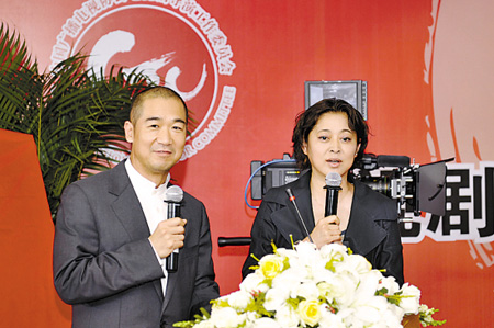 昨天的成立大會更像是一場眾導(dǎo)演的聚會,不少人都身穿便服到場,而主持人倪萍和張國立更是大搞冷幽默。倪萍先把“矛頭”對準(zhǔn)央視:“中央臺影視部的汪國輝主任,你們最招人恨了。到底什么樣的戲能上你們央視呀?今天倒是講講清楚!”接著她話鋒一轉(zhuǎn),又把責(zé)任推給張國立:“這事跟我沒關(guān)系,是張國立教我說的。”被“陷害”的張國立只好干笑兩聲。會場氣氛分外輕松。
