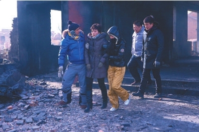 在郊區(qū)的片場,不但氣溫極低,還刮著五六級的西北風,而樓房周圍連安裝保護措施的位置都沒有,工作人員全棉服上陣還冷得跺腳,可憐的袁立最后凍得連說話都張不開嘴了,而當她聽到許小寧發(fā)自心靈的呼喚時,臉上仍然很快就流下幸福的眼淚,表演功力非常了得。在這場戲中臺詞最多的黃磊也被大風搞得面目全非,臉龐黑得像火炭,但他仍情愿為自己喜愛的角色奉獻。