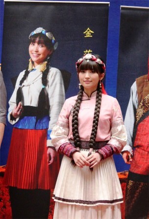 《香格里拉》是歌壇四小天后金莎繼《神話》之后又一次接觸影視劇,對于自己首次出演少數民族角色,金莎絲毫不敢怠慢;為了達到最佳效果,金莎甚至不惜代價自掏腰包制裝,力求最完美的自己。金莎告訴記者,為了今天的這場發布會自己連夜找了服裝設計師趕制了這套少數民族服裝,為的就是提前感受一下香格里拉的人文氣息。的確,金莎今天的這套服裝著實吸引了不少媒體的閃光燈,搶鏡成功。不過比起演員出身的胡歌來說,金莎則稍顯遜色。