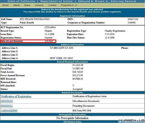 五:章子怡解釋說,基金會是在戛納籌款前兩天在美國加州注冊的,并沒有網友指控的“先籌款,后注冊”。網友發現的紐約地址僅是一個郵寄地址,是為聯絡方便補加的。基金會從未失效或過期,每一筆款項均直接進入基金會在美國銀行開戶的活期帳號,從未取過一分錢,連注冊費等開支均由她個人支付。