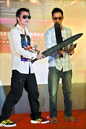當日,謝霆鋒第二次成為爸爸,他承認自己現在心情大好,拍喜劇片正適合。二人在現場也擺開架勢比賽拔劍速度,兩人戲中有不少對打戲份,而家輝透露戲里,謝霆鋒武功高強,“他的責任就在打,我的責任在搞”。張家輝更笑指謝霆鋒:“他生孩子很有本事。”