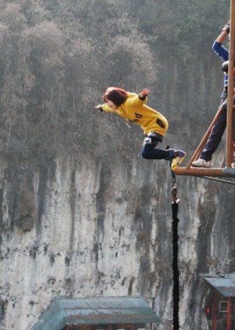 為見周杰倫冒險玩蹦極 膽小嬌俏少女挑戰極限(圖)