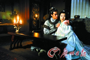 密會司徒府。司徒王允的府邸深處,隱秘的內(nèi)室中,跳躍的燭光見證著呂布與貂蟬(陳好飾)的真情,更營造出強(qiáng)烈的不安氣氛,預(yù)示著一股權(quán)謀的暗流正在涌動。