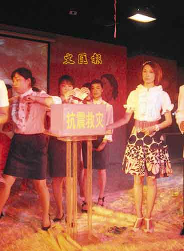 中新網5月21日電 據香港文匯報道,昨日在唐山出席活動的郭可盈,在活動中提議加插一項四川募捐行動環節,在場人士無不贊成,每位來賓也很踴躍捐獻。