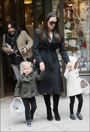 2月22日就要來到了,這個一年一度的美國電影的節(jié)日牽動著我們每一位影迷的心,當(dāng)然了誰會成為今年奧斯卡的贏家同樣撲朔迷離,我們都為自己支持的明星捏了一把汗,但是奧斯卡提名影后安吉麗娜·朱莉好像并沒有感覺到緊張,2月17日還拉著自己的兩位可愛的女兒去紐約購物,當(dāng)天的安吉麗娜·朱莉依然很酷,黑超墨鏡,配黑色大衣,但是低身和寶貝們細(xì)語時仍然透露這無限的母愛,希望這次奧斯卡的結(jié)果能讓這位有愛心的媽媽滿意。