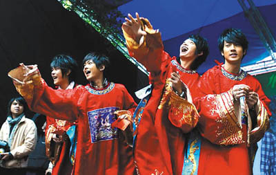 中新網(wǎng)2月4日電 據(jù)臺灣聯(lián)合報報道,臺灣偶像團(tuán)體飛輪海發(fā)片銷售創(chuàng)佳績,4人昨天變身成財神爺,發(fā)送紅包給歌迷,近千名粉絲爭搶紅包,把飛輪海全身摸透透。歌迷太過熱情,辰亦儒的手臂也被抓到見紅,他在簽名會途中突然感到頭暈?zāi)垦#樕查g慘白,活動一度中斷。