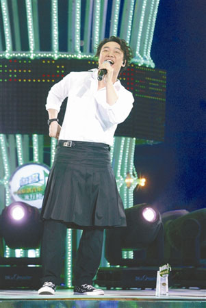 2009“雪碧中國(guó)原創(chuàng)音樂流行榜”日前在京揭曉,勇奪5項(xiàng)大獎(jiǎng)的陳奕迅穿著裙子亮相,他稱自己近年都是自己做造型師,裙子是逛街時(shí)偶然買回來的,想體會(huì)一下當(dāng)女生感覺。