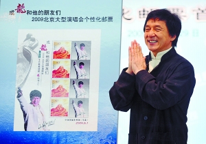 據悉,成龍個性化郵票和紀念郵冊現已在北京各主要郵政支局售賣,去鳥巢觀看“成龍和他的朋友們”演唱會的觀眾也可在鳥巢的郵局購買郵票和郵冊。