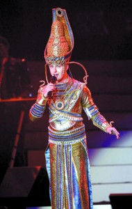 作為一個擁有自己時裝品牌的設計師,維塔斯的每次亮相都給人以華麗之感。昨晚,他更是頻繁換裝,從太空人造型到金燦燦的宮廷服裝以及鑲滿亮鉆的禮服,充分展現其王子形象。不過他每次唱完一兩首歌就要下臺換裝,空留樂隊在臺上演奏,樂隊一曲奏畢,他仍然沒有現身,幾度出現空場的情況。起先場下觀眾會禮節性地報以掌聲,但兩三次之后,有些觀眾便不耐煩地吹起口哨。好在每一次維塔斯重返舞臺,都能迅速抓回觀眾。